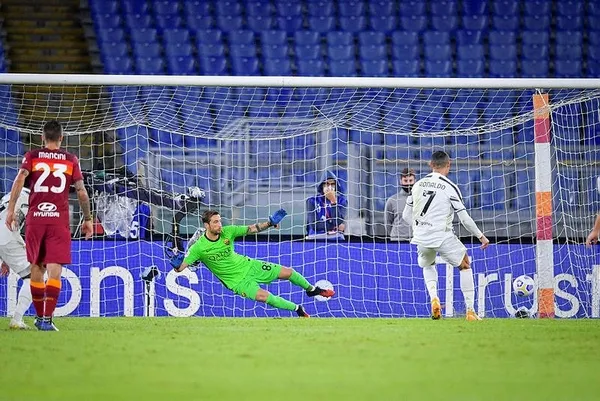 Hakem Di Bello, 43. dakikada bu kez konuk takım lehine penaltı verdi. Penaltı atışını gole çeviren Juventus'un Portekizli yıldızı Cristiano Ronaldo, skora 1-1'lik eşitliği getirdi.