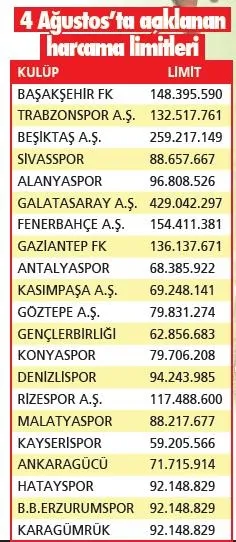 5 oyuncunun maaşı, 4 Ağustos'ta açıklanan harcama limitlerine göre 18 takımı geride bırakıyor. 5 oyuncunun maaşı F.Bahçe, G.Saray ve Beşiktaş'ın haracama limitlerinin gerisinde.