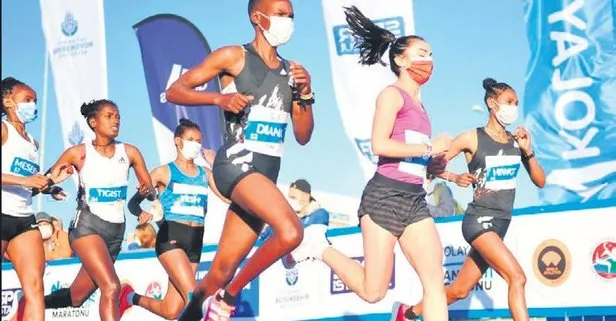 Pandemi nedeniyle sınırlı sayıda sporcunun katıldığı ve mesafe kurallarına göre yarıştıkları maratonda ipi Kenyalı atletler göğüsledi.