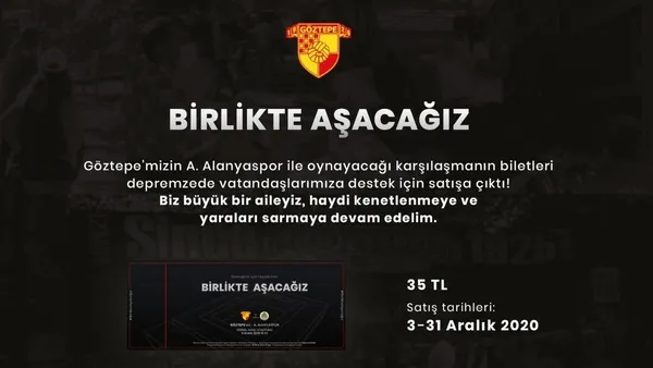 Göztepe, geliri İzmir'deki depremzedelere bağışlanmak üzere, 9 Aralık'ta Aytemiz Alanyaspor ile yapacağı 7. hafta erteleme maçı için "temsili bilet" çıkardı.