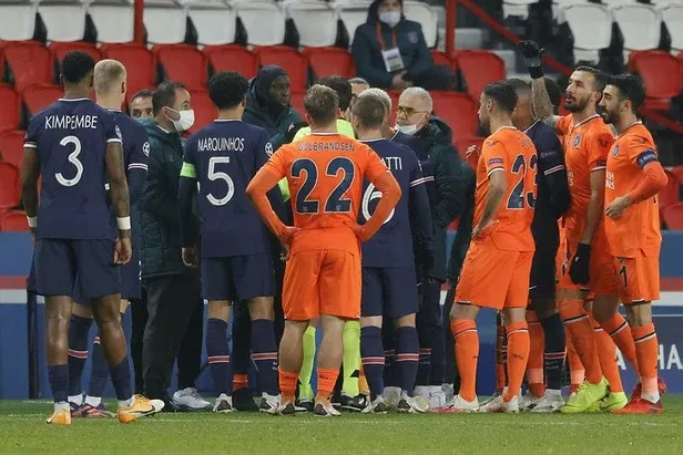 Paris Saint Germain-Medipol Başakşehir maçı, dördüncü hakeminin, yardımcı antrenör Webo'ya ırkçı söylemde bulunduğu gerekçesiyle durdu.