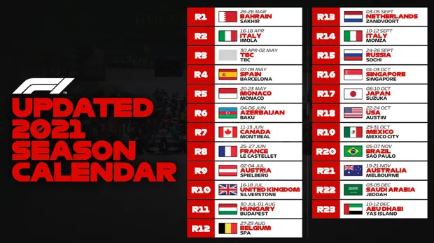 F1 sezonu 28 Mart'ta Bahreyn Grand Prix'si ile başlayacak. 2020'de iki yarışa ev sahipliği yapan Sakhir pistinde, 4 aydan kısa bir süre sonra yeni bir yarış düzenlenecek. Formula 1 takivimine geçen sezon yeniden eklenen Imola, yeni sezonda da yarışlara ev sahipliği yapacak. İtalyan pistindeki yarışın 2 Mayıs'ta yapılması bekleniyor.
