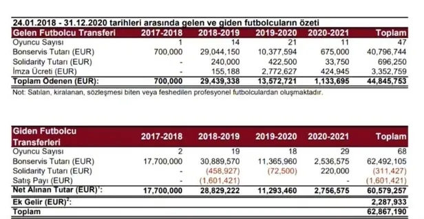 İmza ücreti, toplam ödenen 44 milyon €... 68 oyuncu göndermişiz totale gelelim ne kadar gelir elde etmişiz, ne kadar artıdayız 18 milyon €. Beceriksiz halimiz bu becerikli olsaydık ne olacaktı.