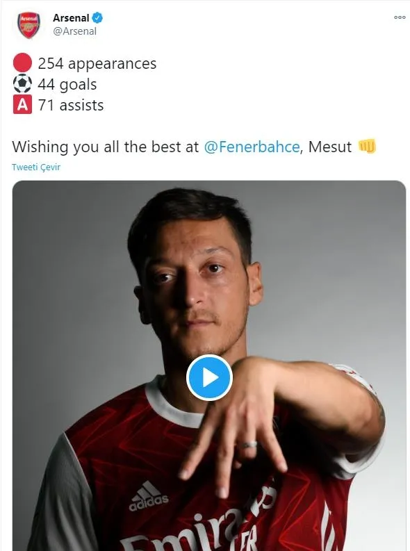 Fenerbahçe dün Mesut Özil'i resmen açıklamasının ardından Arsenal'den açıklama geldi. Arsenal Sportif Direktörü Edu, "Mesut'a olağanüstü katkılarından dolayı teşekkür ederiz. Kendisine ve ailesine bundan sonraki yaşamlarında mutluluklar dileriz" açıklamasını yaptı.