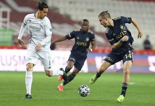Fener yine deplasmanda hayata döndü. Evinde aldığı Antalyaspor beraberliği ile şok yaşayan Kanarya dün Konya'da 3-0 kazanarak Galatasaray'ı yakaladı. Lider Beşiktaş'la farkı da maç fazlasıyla 2'ye indirdi. 3. dakikada Mert Hakan vurdu, Sehic çıkardı. Valencia'nın şutu da auta gitti.