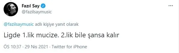 Fenerbahçe'nin puan kaybı Fazıl Say'ı Rambo Okan'a çevirdi! Tweet üstüne tweet...