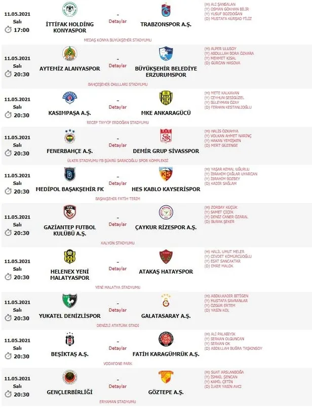 İttifak Holding Konyaspor - Trabzonspor maçı hariç, tamamı saat 20.30'da başlayacak 10 karşılaşmada görev yapacak hakemler şöyle: