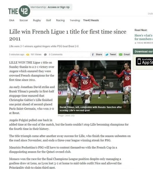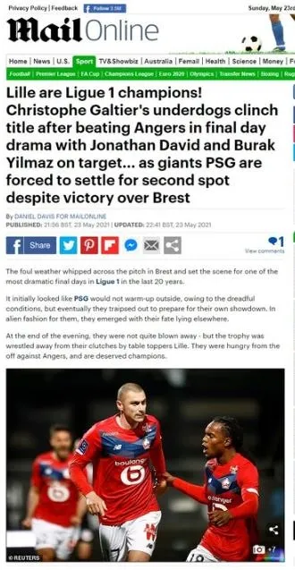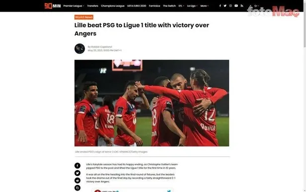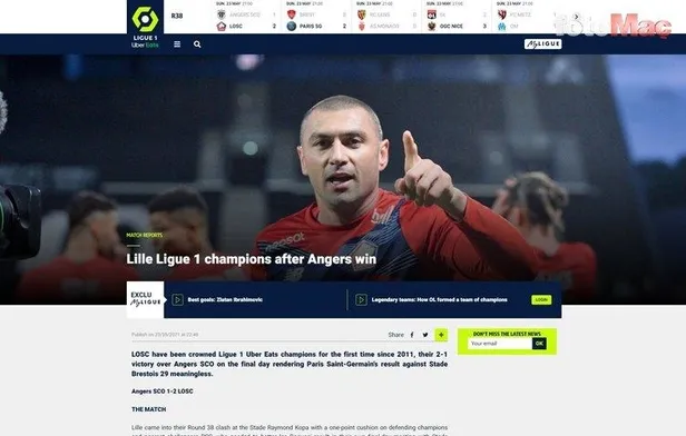 Ligin son gününde Angers'i Jonathan David ve Burak Yılmaz'la deviren Lille, PSG'yi geride bırakarak Ligue 1'de şampiyopnluğunu ilan etti. (Daily Mail)