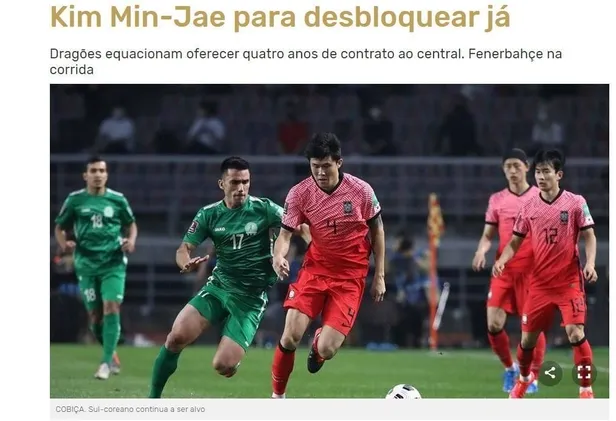 Portekiz basınından Record'un haberine göre Fenerbahçe, Çin Ligi ekiplerinden BJ Guoan forması giyen 24 yaşındaki Güney Koreli stoper Min-jae Kim'le ilgileniyor. Oyuncuya Galatasaray ve Fenerbahçe'nin dışında Portekiz devi Porto'nun da yakın ilgisi var.