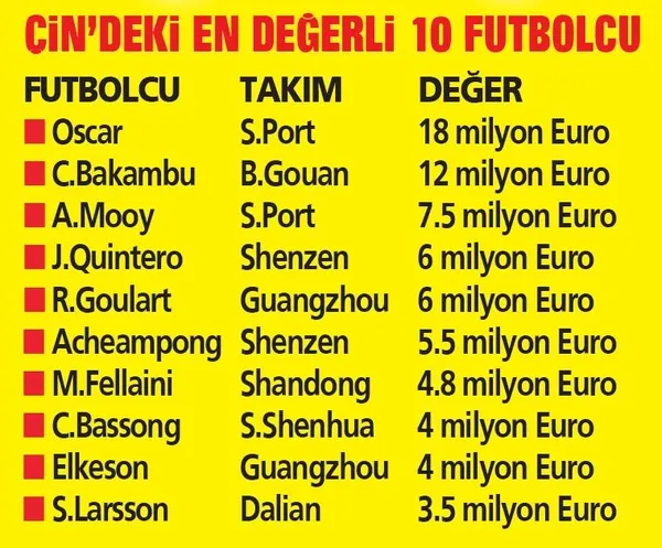 Ortaya çıkan bu tablo Avrupa futbolunda ara transferin seyrini değiştirebilir. Başta Türkiye olmak üzere birçok ülkede gözler şimdiden Çin'den ayrılması muhtemel yıldızlara çevrildi.