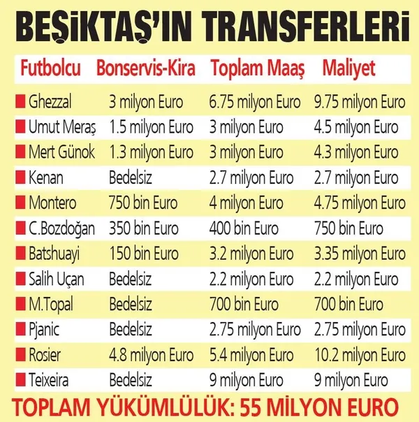 Siyah-Beyazlı Yönetim, sezon başında 55 milyon Euro'luk yükümlülüğün altına girdi.