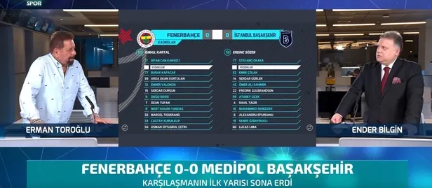 Süper Lig'in 24. haftasında Fenerbahçe evinde Başakşehir'i ağırlıyor. Maçın 45 dakikalık bölümü tamamlanırken A Spor ekranlarında Erman Toroğlu'ndan Fenerbahçe'ye eleştiri geldi. Ermen Toroğlu, "Top Ferdi'ye geldiğinde Fenerbahçe iyi oynuyor ama diğerleri yapamıyor. Diğerlerinin Ferdi'ye yardım etmeleri lazım." dedi.