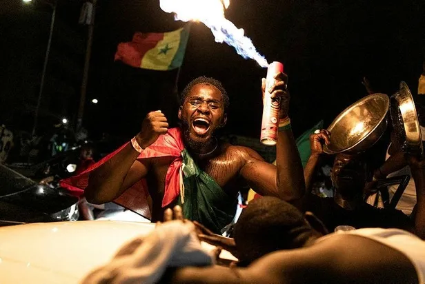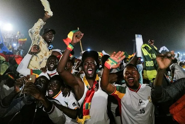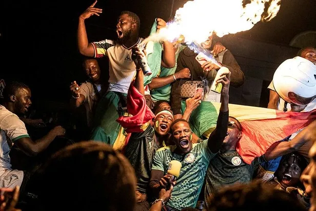 Başkent Dakar'da taraftarlar sabahın ilk ışıklarına kadar cadde ve sokaklarda sevinç gösterilerine devam etti, uzun kortejler oluşturdu.