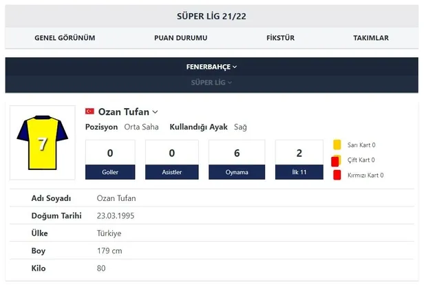 Ozan Tufan, 7 sezonda 182 maç oynadı. Kalan 8 haftada affedilmezse 45 maçta da kadro dışı kalmış olacak. Kariyerinin son döneminde büyük düşüş yaşıyor.