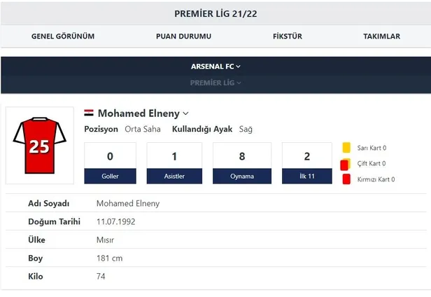 Mohamed Elneny, geçen sezon Arsenal formasıyla toplam 41 maça çıkarken, bu sezon ise 13 maçta kaldı. Deneyimli oyuncunun ise bonservisini eline aldıktan sonra daha fazla forma şansı bulabileceği bir takımda forma giymeye sıcak baktığı konuşuluyor.