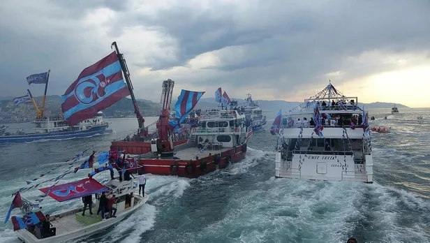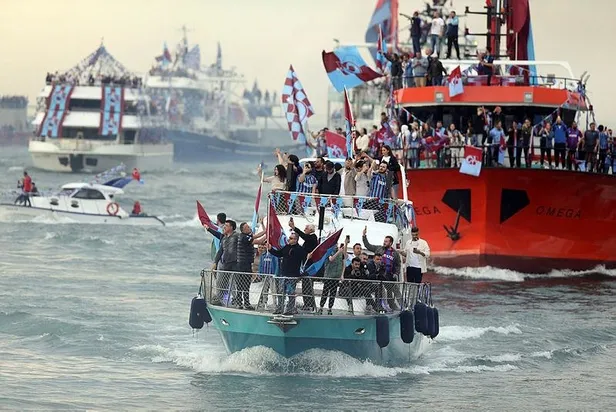 Ayasofya Sahili ve Faroz Limanı boyunca seyreden 'Şampiyonlar Filosu'nu' sahilde bekleyen yüzlerce taraftar meşaleler ve marşlarla karşıladı. Faroz Limanı'na girerek taraftarları selamlayan bordo mavili takım, ardından Trabzon Limanı'na geçerek şampiyonluk turu yapacağı üstü açık otobüse bindi.