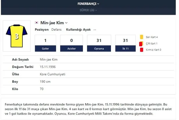 Kim-Min Jae sezon başında Fenerbahçe'ye Çin'in Beijing Guoan takımından 3 milyon Euro'ya transfer olmuş ve kısa süre içinde Avrupa'nın en gözde stoperlerinden biri haline gelmişti.