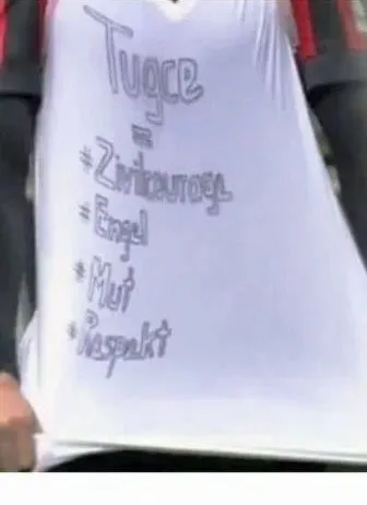 Seferovic'in tişörtünde Almanca olarak "Tuğçe: Medeni cesaret, melek, cesaret, saygı" yazıyordu.