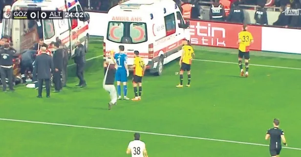 Önce Altay tribününden Göztepe bölümüne havai fişek atıldı ve bazı taraftarlar ağır yaralandı. Sonra Göztepeli bir taraftar, Altay kalecisi Ozan’ın kafasına korner direğiyle vurdu. Hakem maçı tatil etti.