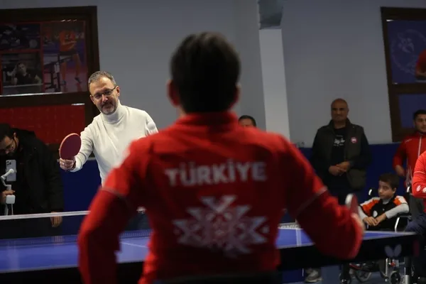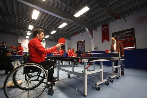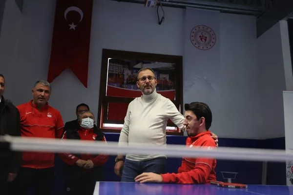 Sporcular ile yakından ilgilenen ve tek tek onlarla sohbet eden Bakan Kasapoğlu, 2016 Rio ve 2020 Tokyo Paralimpik Oyunları'nda altın madalya kazanan milli masa tenisçi Abdullah Öztürk ile bir masa tenisi maçı yaptı.