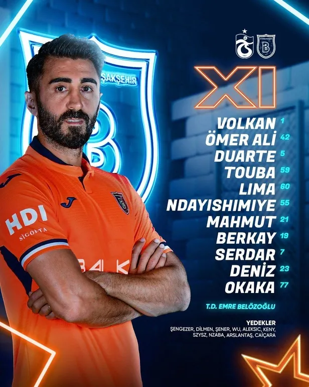 BAŞAKŞEHİR: Volkan, Ömer Ali, Duarte, Touba, Lima, Ndayishimiye, Mahmut, Berkay, Serdar, Deniz, Okaka.