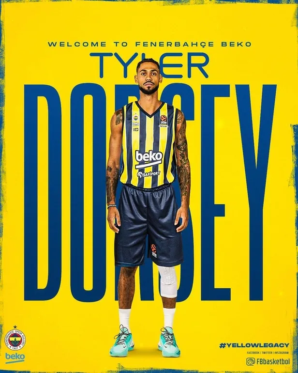 Fenerbahçe Beko Erkek Basketbol Takımı, ABD asıllı Yunan oyun kurucu Tyler Dorsey'yi kadrosuna kattığını duyurdu. Sarı-lacivertli kulüpten yapılan açıklamaya göre, 27 yaşındaki basketbolcu 2024-2025 sezonunun sonuna dek Fenerbahçe Beko forması giyecek.