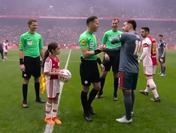 Geçtiğimiz günlerde ligde oynanan Ajax-Feyenoord maçında Ajax kaptanı Dusan Tadic ile Feyenoord kaptanı Orkun Kökçü, hakemin gerçekleştirdiği hava atışında bir araya geldi.