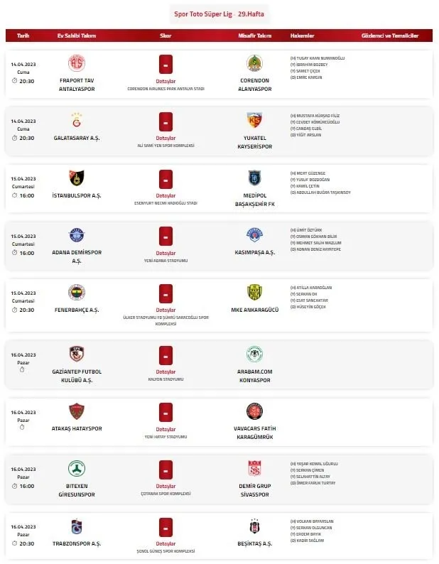 Haftanın maçlarını yönetecek hakemler şöyle;