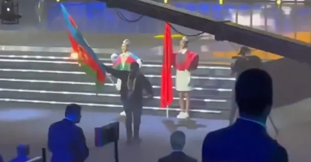 Ardından bir izleyici sahne önüne geçerek, Azerbaycan bayrağını taşıyan kızın elinden bayrağı alarak yaktı. Görevlilerin anında müdahalesiyle eylemci salondan çıkartıldı ve bayrak göstericiden alındı.