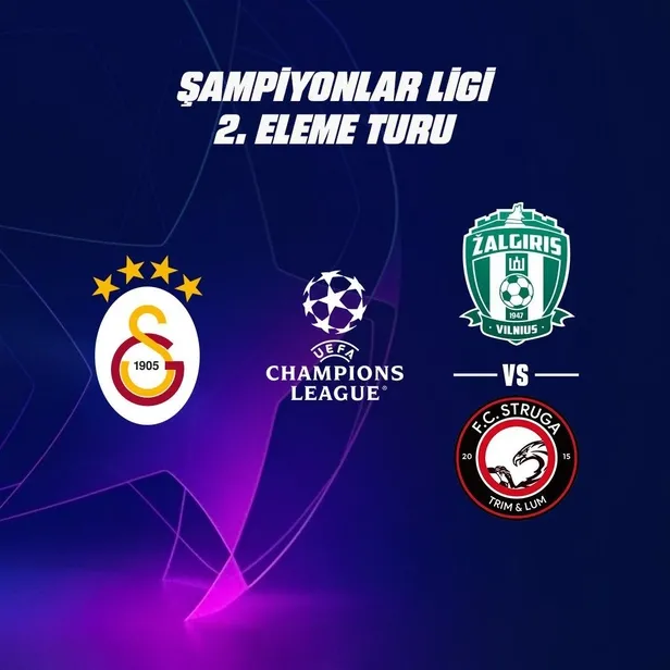 Galatasaray, FK Zalgiris Vilnius (Litvanya) / FC Struga (Makedonya) maçının galibi ile karşılaşacak.