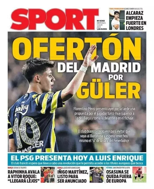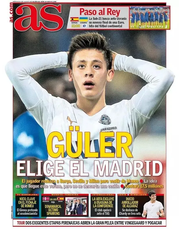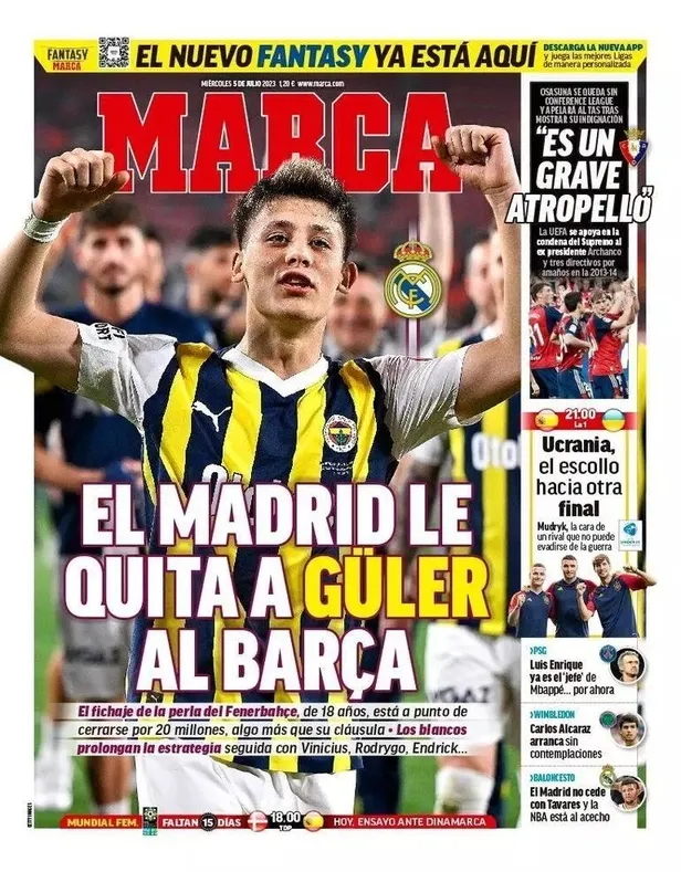 Öte yandan İspanyol basını Fenerbahçe'den ayrılacak olan Arda Güler'i manşetlerine taşıdı.
