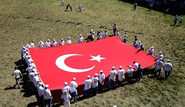 SARAYİÇİ ER MEYDANI'NDA DEV TÜRK BAYRAĞI DOLAŞTIRILDI