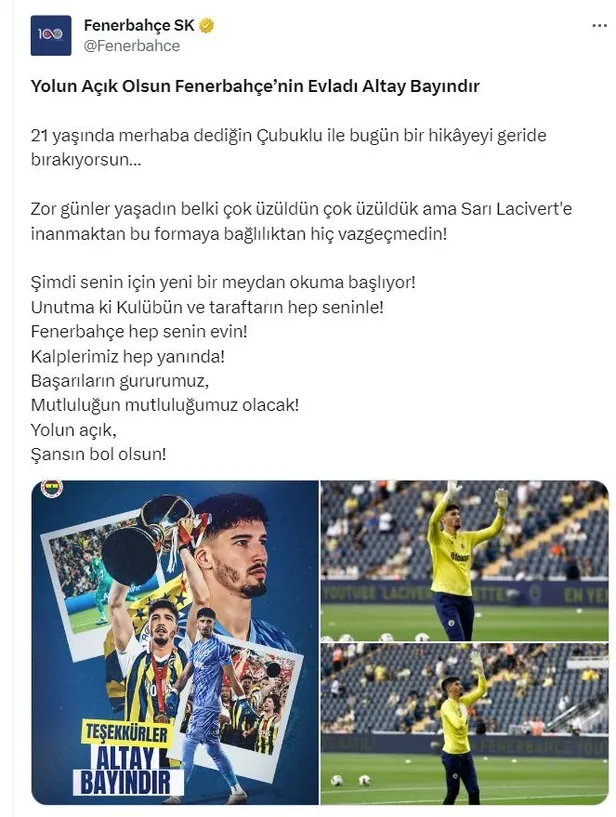 Sarı Lacivertliler, Altay Bayındır için resmi siteden veda mesajı yayımladı.