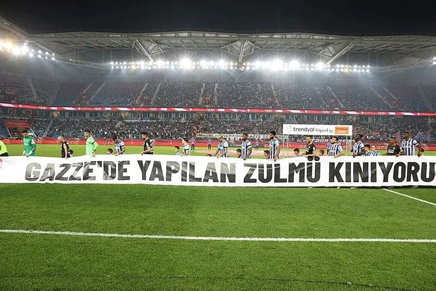 Öte yandan her iki takım oyuncuları ve hakemler sahaya "Gazze'de yapılan zulmü kınıyoruz!" pankartıyla çıktı.
