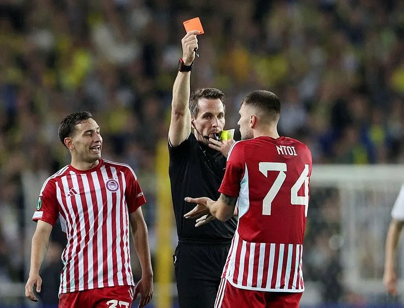 120+3. dakikada Olympiakos 10 kişi kaldı. Ntoi'nin Cengiz Ünder'e yaptığı hareket sonrasında hakem Tobias Stieler, bu futbolcuyu ikinci sarı karttan kırmızı kartla oyun dışına yolladı.
