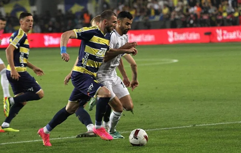 69. dakikada topla hareketlenen Muçi'nin ceza yayından çektiği sert şutta, meşin yuvarlak takım arkadaşı Cenk Tosun'a çarparak auta gitti.