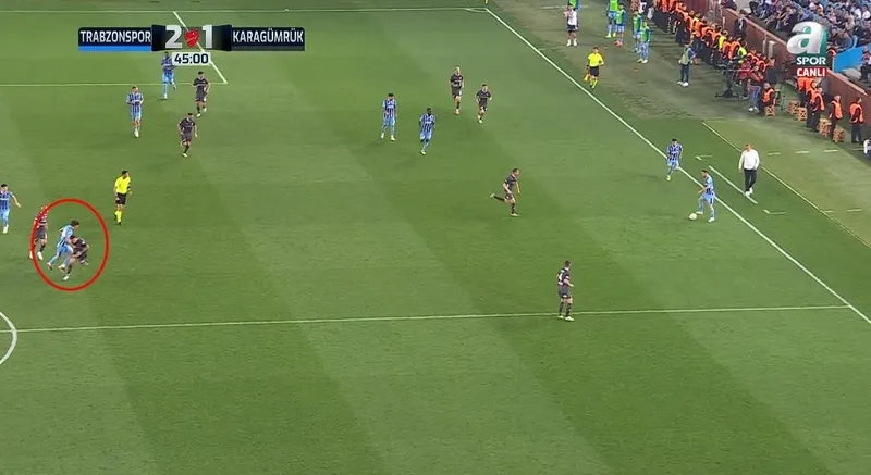 45. dakikada Enis Destan, topsuz alanda Ceccherini'ye yaptığı faul sonrası önce sarı kart gördü. VAR ile pozisyonu izleyen Ali Şansalan, sarı kartı iptal ederek Enis Destan'a kırmızı kart gösterdi.