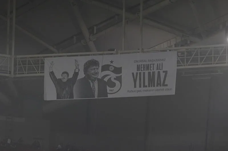 Her iki takım futbolcuları da siyah bant takarken skorbordda da Mehmet Ali Yılmaz'ın Trabzonspor başkanlığı dönemindeki görsellerine yer verildi.