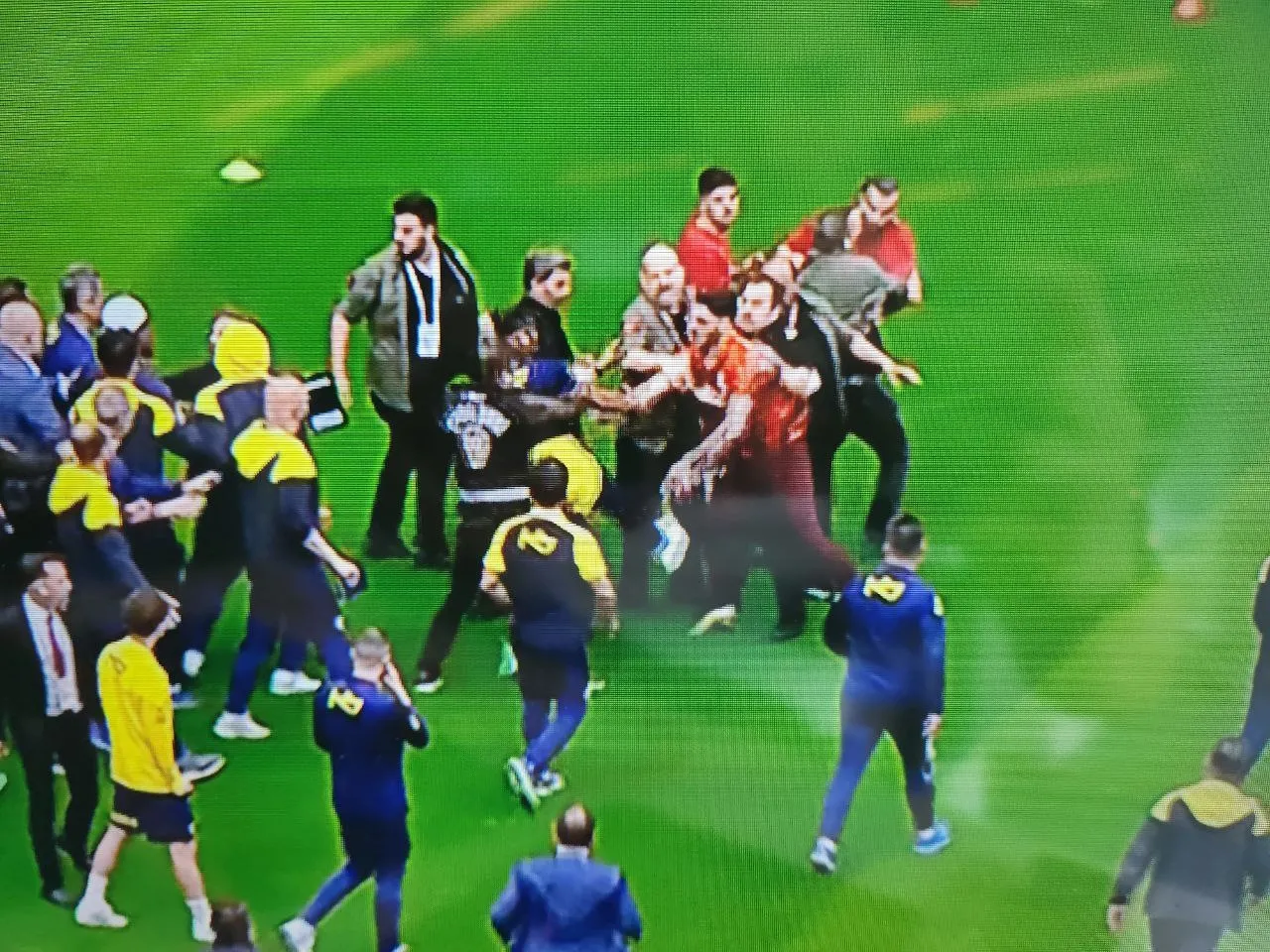 Gerilimin büyümesi üzerine iki takım oyuncuları da olaya karıştı ve arbede yaşandı.