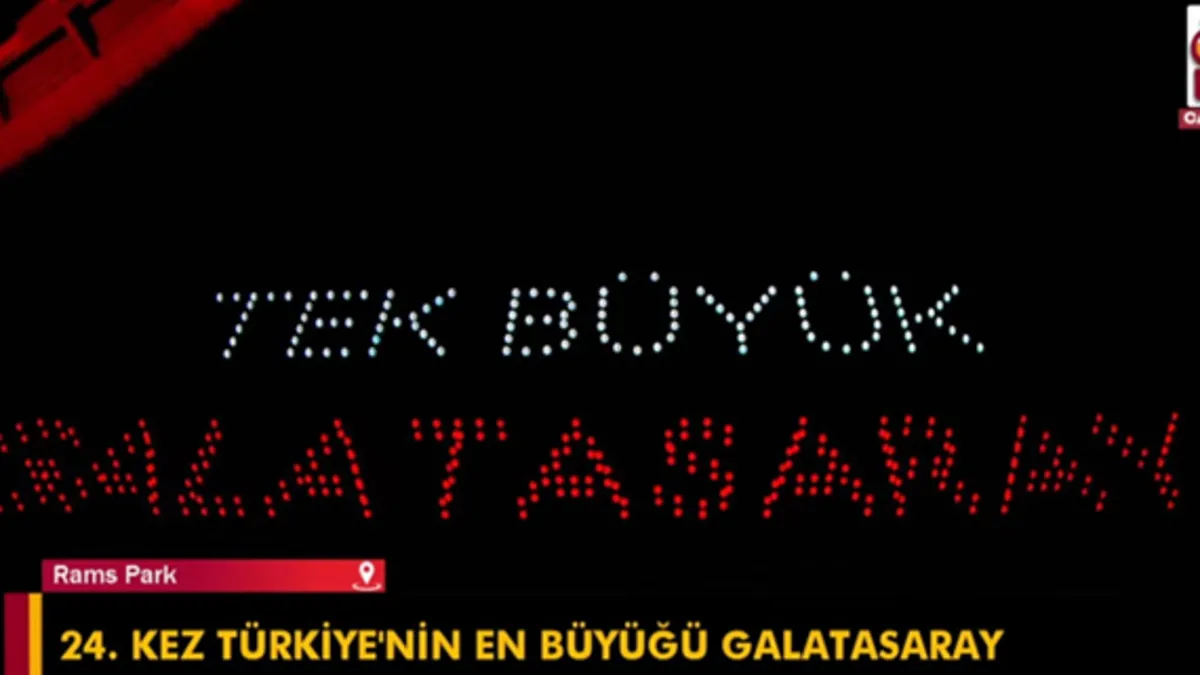 Rams Park'ta şampiyonluk kutlamalarına başlayan Galatasaray, birçok etkinliğe imza atıyor. Sarı kırmızılılar için en dikkat çekici noktalardan biri de drone gösterisiydi. Gökyüzüne oynayan sarı kırmızılı yazılar kulübün tarihnden 25'inci şampiyonluk ve beşinci yıldıza kadar pek çok şekle büründü. Ayrıca Mauro Icardi de resmedildi.