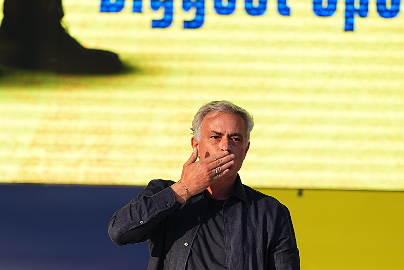 Trendyol Süper Lig'i ikinci tamamlayan Fenerbahçe, dünyada ses getiren bir hamle gerçekleştirdi. Sarı lacivertliler dünyaca ünü Portekizli teknik direktör Jose Mouinho imza töreninde Başkan Ali Koç'tan sonra söz alarak taraftarları selamladı ve 'Tünaydın' dedi.