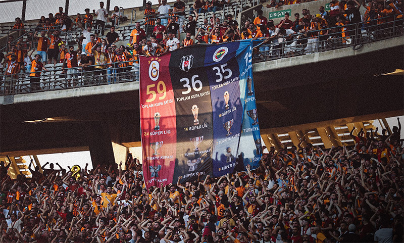 Beşiktaş ile Süper Kupa'da karşılaşan Galatasaray'a binlerce taraftar tribünde destek verdi. Sarı kırmızılılara gönül verenler, tüm ezeli rakiplerine göndermede bulunarak şu ana kadar alınan kupaların sayılarını sergiledi. Siyah beyazlılar ise Boğazın efendisi, İstanbul'un sahibi pankartı ile cevap verdi...