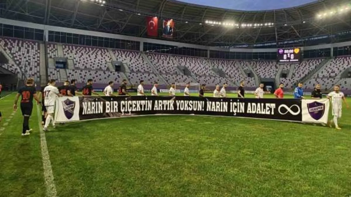 TFF 3. Lig'de oynanan Orduspor 1967 - Edirnespor, Yeni Ordu Stadında saat 19.00'da karşı karşıya geldi. Karşılaşma öncesi her iki takım sahaya, kaybolduktan 19 gün sonra cansız bedeni bulunan 8 yaşındaki Narin Güran'a açtıkları pankartla dikkat çekti. Pankartta, "Narin bir çiçektin, artık yoksun! Narin için adalet!" ifadeleri yer aldı.