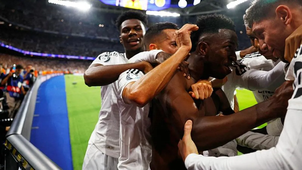 Real Madrid'in golleri 60'ıncı Antonio Rüdiger, 62, 86 ile 90+3'üncü dakikada Vinicius Junior ve 83'üncü dakikada Lucas Vazquez'den geldi. Alman ekibinin gollerini ise 30'uncu dakikada Donyell Malen ve 34'üncü dakikada Jamie Bynoe-Gittens attı.