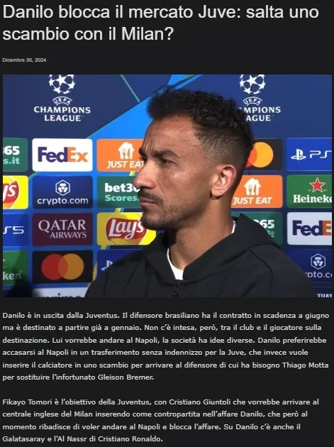 Danilo'nun Juventus'tan ayrılığı düşünmesi bazı takımları da harekete geçirdi. Kulübü Juventus, Fikayo Tomoroi'ye karşılık takas düşünürken Al-Nassr ve Napoli de devede. Özellikle Aymeric Laporte'un Avrupa'ya düşünmesi nedeniyle bu bölgeye takviye isteyen Riyad temsilcisi takviye planlıyor.