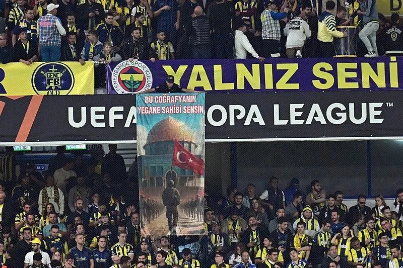 Fenerbahçe, UEFA Avrupa Ligi'nin 2. haftasında Fransa'nın Nice takımını konuk etti. Karşılaşmada taraftarlar İsrail'in Gazze'deki soykırımına tepki gösterirken Filistin'e destek verdi. Kudüs’ün Fethi’nin 838’inci yıl dönümünde taraftarların açtığı pankart ise dikkatlerden kaçmadı.