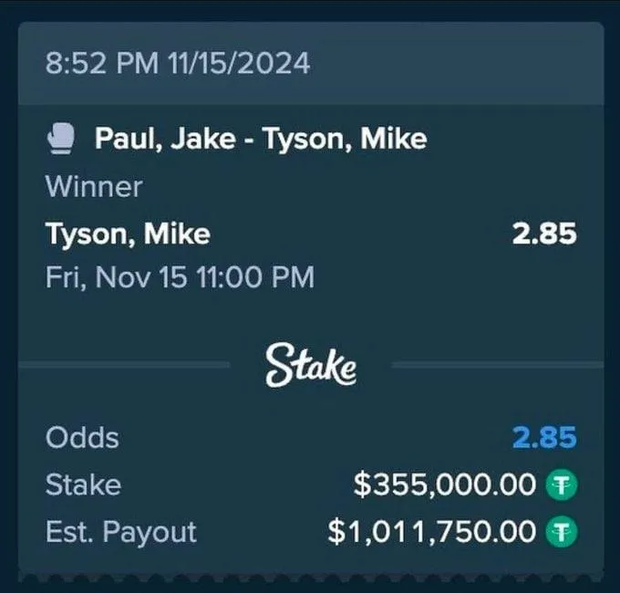 Drake, Paul dövüşlerine büyük bahisler koymaya yabancı değil. Bahislerini finanse eden bahisçi Stake ile bir sponsorluk anlaşması olan 38 yaşındaki Drake, geçen yıl "The Problem Child"ın, aynı zamanda influencer-boksör Tommy Fury ile karşılaştığı ve kaybettiği maçta 1,2 milyon dolar ortaya koymuştu