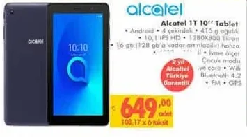 Son olarak ŞOK markette indirimli tablet kampanyasına katıldı. Çarşamba günü raflarda olacak olan indirimli tabletin markası Alcatel olarak belirtildi. İşte ürünün özellikleri