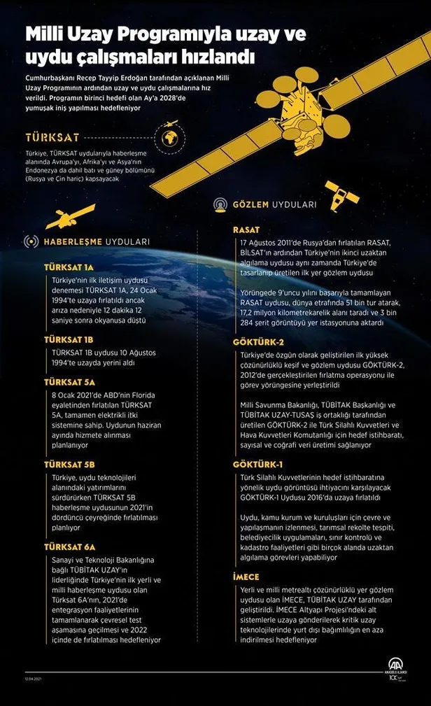 Başkan Recep Tayyip Erdoğan tarafından açıklanan Milli Uzay Programı'nın ardından uzay ve uydu çalışmalarına hız verildi.
