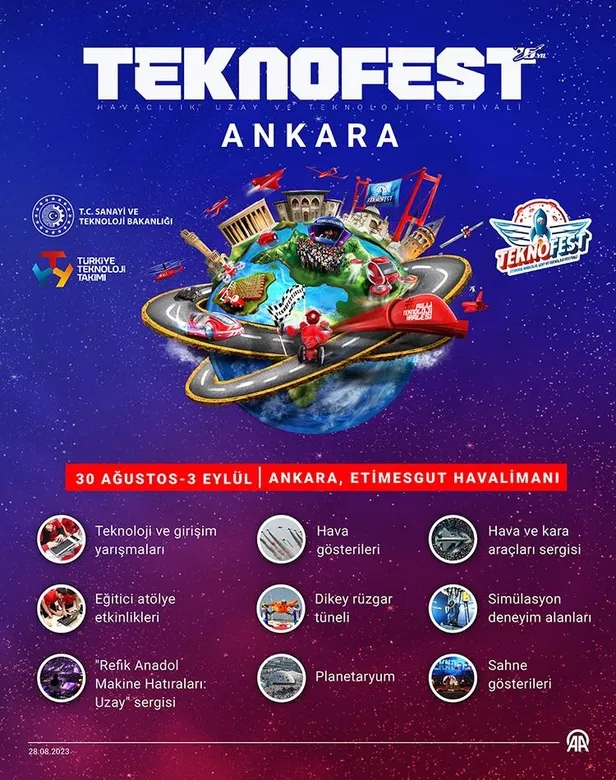 Dünyanın en büyük Havacılık, Uzay ve Teknoloji Festivali TEKNOFEST, İstanbul'dan sonra yolculuğuna Cumhuriyet'in 100. yılında festivalin ikinci durağı başkent Ankara ile devam ediyor.